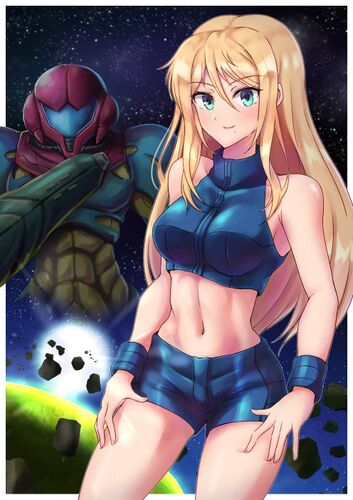 『メトロイド フュージョン』はいいぞ サムスさん (中身の方) を描いた。『メトロイド フュージョン』の服装。フュージョンスーツも添えておいた。こういうタンクトップ姿とかも好きなので、次回作では復活してほしいのぉ…(エロ親父) (絵を描くスピードが遅…